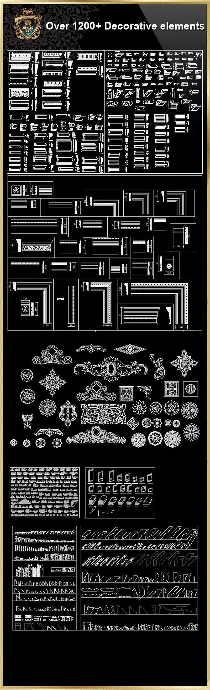 Over 1200+ Decorative elements CAD Blocks V.3 Over 1200+ Decorative elements CAD Blocks V.4 Over 1200+ Hardware Accessories  CAD Blocks